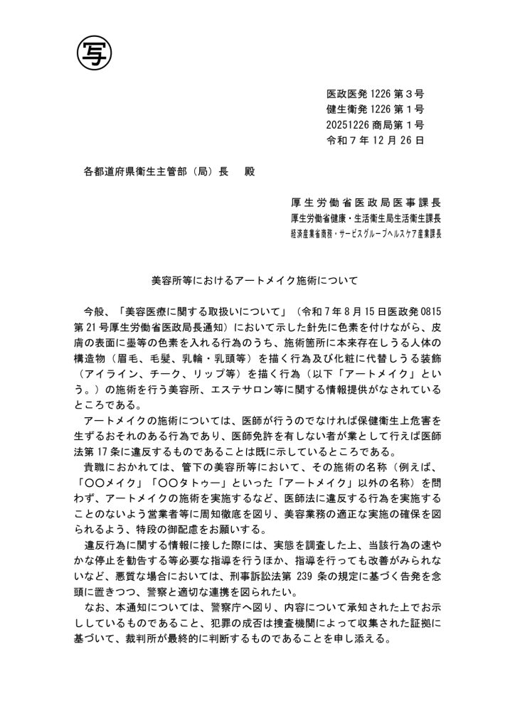 アートメイクとは法律上の位置付けが異なります。