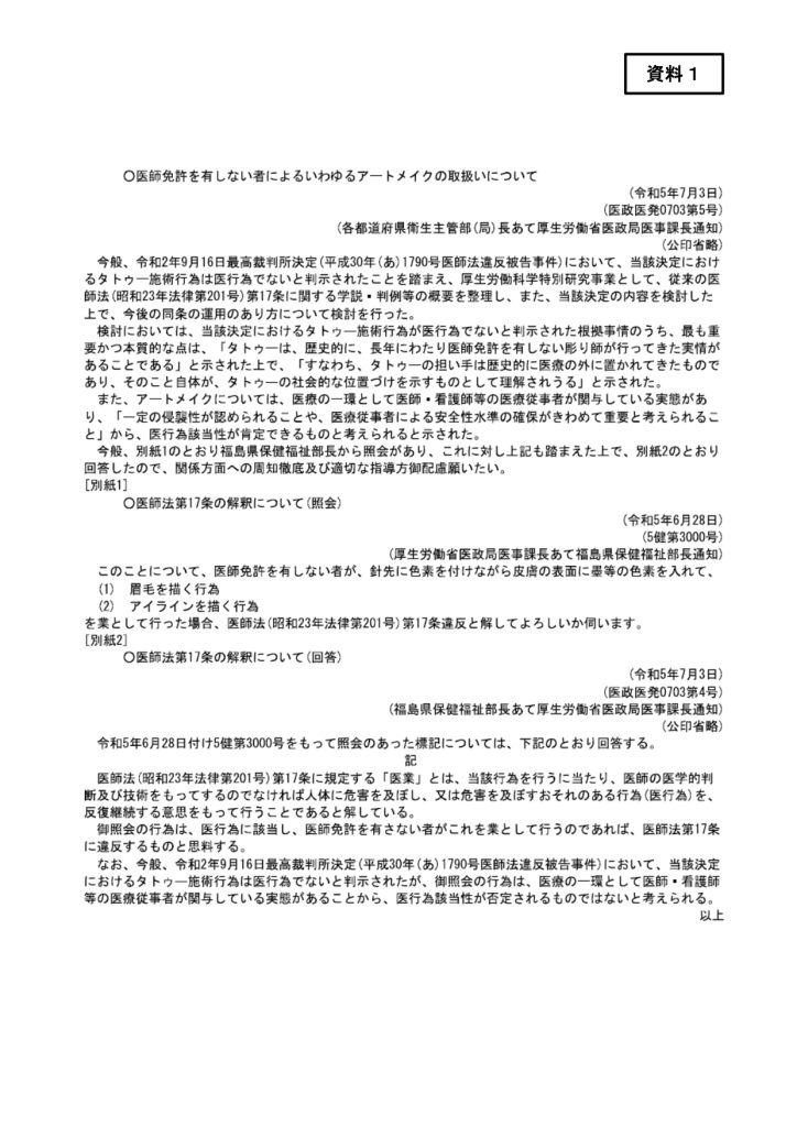 施術内容がアートメイクに該当するものであれば、