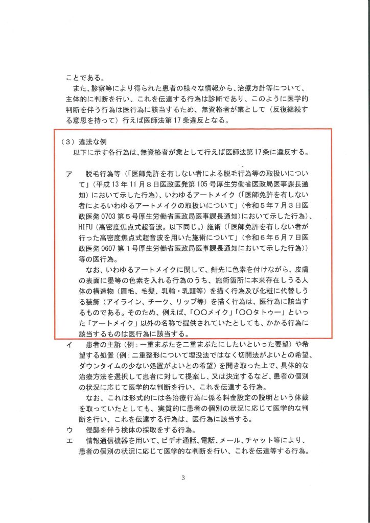 同様に医師法違反となる点について、