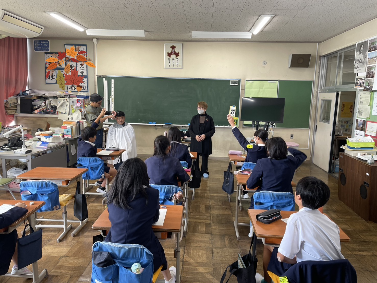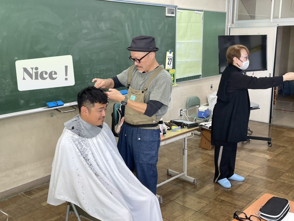 内藤久美子先生の講義、編み込み体験、先生を実際にカットしてみたり